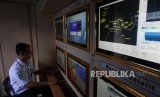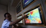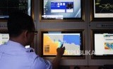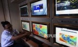 REPUBLIKA.CO.ID, MERAK -- Petugas mengecek informasi cuaca dan gelombang perairan selat Sunda di Posko Info Cuaca BMKG di Pelabuhan Merak, Banten, Jumat (8/6).