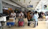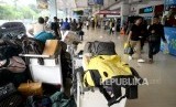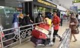 REPUBLIKA.CO.ID, JAKARTA -- Penumpang memadati terminal keberangkatan Bandar Udara Halim Perdanakusuma, Jakarta, Ahad (10/6).