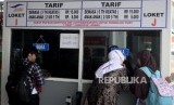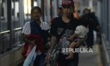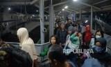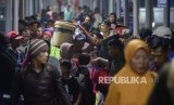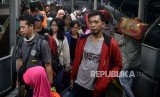 REPUBLIKA.CO.ID, MERAK -- Calon penumpang memadati gangway menuju kapal di Pelabuhan Merak, Banten, Senin (11/6).
