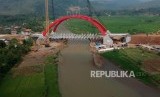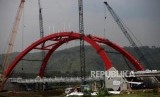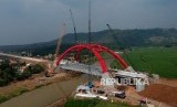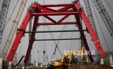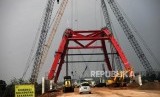 REPUBLIKA.CO.ID, BATANG -- Suasana Pembangunan jembatan Kali Kuto masih dalam proses penyelesaian, Gringsing, Batang, Jawa Tengah, Senin (11/6).