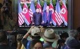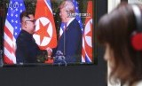 REPUBLIKA.CO.ID, - SEOUL -- Orang-orang antusias menonton layar TV yang menyiarkan pertemuan Presiden AS Donald Trump dengan pemimpin Korea Utara Kim Jong-un, di Seoul Railway Station di Seoul, Korea Selatan, Selasa (12/6).