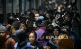 Pemudik yang akan menyebrang ke pulau Sumatera berjalan menuju kapal di Pelabuhan Merak, Banten, Selasa (12/6). (FOTO : Republika/Prayogi)
