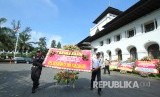 Ratusan karangan bunga bertulisakan ucapan terima kasih kepada Gubernur Jawa Barat diakhir masa jabatannya memenuhi halaman Gedung Sate, Kota Bandung, Selasa (12/6). (FOTO : Republika/Edi Yusuf)