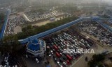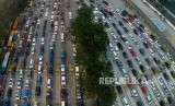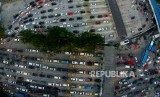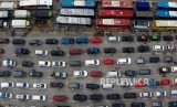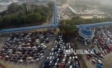 REPUBLIKA.CO.ID, MERAK -- Foto udara ribuan kendaraan mengantri untuk memasuki kapal di Pelabuhan Merak, Banten Rabu (13/6).