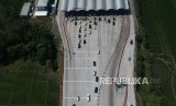 REPUBLIKA.CO.ID, CIREBON -- Sejumlah kendaraan pemudik melintas di pintu masuk tol Cipali, Palimanan, Cirebon, Jawa Barat, Rabu (13/6).