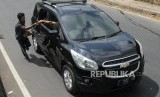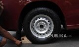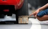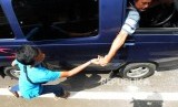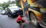 REPUBLIKA.CO.ID, BANDUNG -- Warga mengganjal ban mobil pemudik di kawasan Nagreg, Kabupaten Bandung, Jawa Barat, Rabu (13/6).
