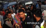 Anggota kepolisian mengangkat jenazah salah satu korban kapal motor Arista yang tenggelam di Rumah Sakit Jala Ammari, Makassar, Sulawesi Selatan, Rabu (13/6). (FOTO : Abriawan Abhe/Antara)