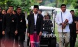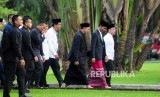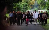 Presiden Joko Widodo (kedua kanan) bersama Menteri Agama Lukman Hakim Saifuddin (ketiga kanan), Menteri Sekretariat Negara Pratikno (kanan) berjalan saat akan melaksanakan Shalat Idul Fitri 1439 Hijriah di Lapangan Astrid Kebun Raya Bogor, Kota Bogor, Jawa Barat, Jumat (15/6). (FOTO : Republika/Putra M. Akbar)