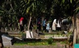 REPUBLIKA.CO.ID, BOGOR -- Warga berziarah di TPU Blender, Kota Bogor, Jawa Barat, Sabtu (16/6).