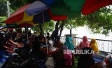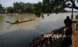 REPUBLIKA.CO.ID, JAKARTA -- Wisatawan menikmati wahana perahu naga di kawasan Perkapungan Budaya Betawi, Setu Babakan, Jakarta, Ahad (17/6).