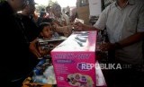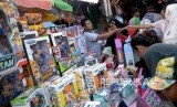 REPUBLIKA.CO.ID, JAKARTA -- Calon pembeli memilih mainan untuk anaknya ketika berbelanja di Pasar Gembrong, Jakarta,Ahad (17/6).