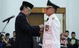 REPUBLIKA.CO.ID, BANDUNG -- Menteri Dalam Negeri (Mendagri) Tjahjo Kumolo melantik Komjen Pol Mochamad Iriawan sebagai Penjabat Gubernur Jawa Barat, di Gedung Merdeka, Kota Bandung, Senin (18/6).