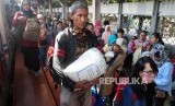 REPUBLIKA.CO.ID, JAKARTA -- Sejumlah pemudik tiba di Stasiun Pasar Senen, Jakarta, Selasa (19/6).