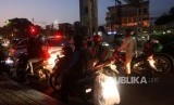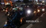 REPUBLIKA.CO.ID, JAKARTA -- Pemudik menggunakan motor melintas saat arus balik Lebaran di ruas Jalan Kalimalang, Jakarta, Selasa (19/6).