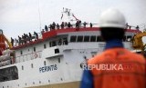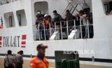 REPUBLIKA.CO.ID, JAKARTA -- Pemudik turun dari kapan perintis saat tiba di Pelabuhan Tanjung Priok, Jakarta, Rabu (20/6).