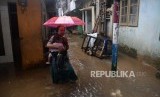 REPUBLIKA.CO.ID, JAKARTA -- Warga melintasi banjir yang melanda kawasan Kebon Pala, Jatinegara, Jakarta, Senin (25/6).