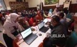 Wali murid mendaftar calon siswa didik baru secara Online diLayanan Penerimaan Peserta Didik Baru (PPDB) di SMKN 1, Jakarta, Selasa (26/6). (FOTO : Republika/Mahmud Muhyidin)