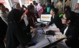 Panitia pelaksana melayani antrean wali murid saat pendaftaran PPDB Online di SMKN 1, Jakarta, Selasa (26/6). (FOTO : Republika/Mahmud Muhyidin)