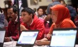 Suasana pendaftaran PPDB Online di SMKN 1, Jakarta, Selasa (26/6). (FOTO : Republika/Mahmud Muhyidin)