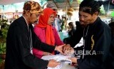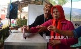 pemilih tuna netra diberikan arahan oleh petugas tempat pemungutan suara(TPS) 20 ramah akses disabiltas untuk pemilihan kepala daerah Kota Sukabumi dan Jawa Barat di Kota Sukabumi, Jawa Barat, Rabu (27/6). (FOTO : Republika/Iman Firmansyah)
