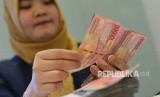 Petugas teller menghitung pecahan uang rupiah di Kantor Pusat Bank Mandiri, Kamis (28/6). (FOTO : Antara/Wahyu Putro A)