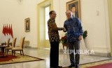 Presiden Jokowi menyambut kedatangan Presiden Bank Dunia, Jim Yong Kim, di Istana Kepresidenan, Rabu (4/7). (FOTO : Republika/Debbie Sutrisno)