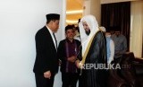 Wakil Ketua Umum Dewan Masjid Indonesia (DMI) yang juga Wakapolri Komjen Pol Syafruddin (kiri) bersama Imam Masjidil Haram Syekh Hasan Abdul Hamid Bukhari (kanan) usai pertemuan di Kantor DMI, Kebayoran Baru, Jakarta, Rabu (4/7). (FOTO : Republika/Putra M. Akbar)