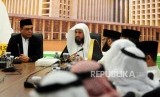 Wakil Ketua Umum Dewan Masjid Indonesia (DMI) yang juga Wakapolri Komjen Pol Syafruddin (kiri) bersama Imam Masjidil Haram Syekh Hasan Abdul Hamid Bukhari memberikan paparan saat pertemuan di Kantor DMI, Kebayoran Baru, Jakarta, Rabu (4/7). (FOTO : Republika/Putra M. Akbar)