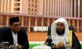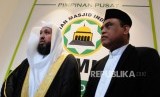 Wakil Ketua Umum Dewan Masjid Indonesia (DMI) yang juga Wakapolri Komjen Pol Syafruddin (kanan) bersama Imam Masjidil Haram Syekh Hasan Abdul Hamid Bukhari memberikan paparan usai pertemuan di Kantor DMI, Kebayoran Baru, Jakarta, Rabu (4/7). (FOTO : Republika/Putra M. Akbar)