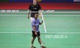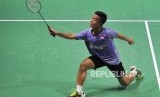 REPUBLIKA.CO.ID, JAKARTA -- Pebulutangkis Indonesia Anthony Sinisuka Ginting mengembalikan kok kearah Pebulutangkis Belanda Mark Caljouw pada Turnamen Bulu Tangkis Blibli Indonesian Open 2018 di Istora Senayan, Jakarta, Rabu (4/7).