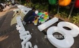 REPUBLIKA.CO.ID, JAKARTA -- Pekerja menyelesaikan pemasangan tulisan Asian Games yang akan dipasang di Depan Gedung Balai Kota, Jakarta, Kamis (5/7).