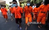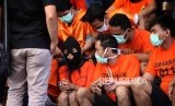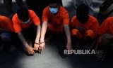 REPUBLIKA.CO.ID, JAKARTA -- Sejumlah tersangka diperlihatkan saat rilis pengungkapan hasil Operasi Cipta Kondusif pemberantasan premanisme, curat, curas dan curanmor di Mapolda Metro Jaya, Jakarta, Jumat (6/7).