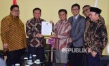 REPUBLIKA.CO.ID, JAKARTA -- Ketua Bawaslu, Abhan menerima paktaintegritas dari Presiden PKS Sohibul Iman(kanan) usia melakukan kunjungan ke Partai Keadilan Sejahtera (PKS) di DPP PKS, Senin (9/7).