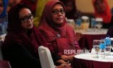 Ketua Umum PP Aisyiyah Siti Noordjanah Djohantini (kanan) bersama Menteri Luar Negeri Retno LP Marsudi (kiri) saat acara Halal Bi Halal PP Aisyiyah di Kantor PP Muhammadiyah, Jakarta, Selasa (10/7). (FOTO : Republika/Putra M. Akbar)