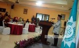 Sekjen PP Muhammadiyah Abdul Mu'ti memberikan sambutan saat acara Halal Bi Halal PP Aisyiyah di Kantor PP Muhammadiyah, Jakarta, Selasa (10/7). (FOTO : Republika/Putra M. Akbar)