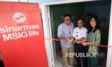 Ketua Umum RBK (Rumah Belajar Kita)Muhammad Haekal (kiri), General Manager, Head of Marketing Business Development & Strategic Sinarmas MSIG Life Ruth Nainggolan (kanan) dan Lurah Manggarai Drs. H. Budi Santoso (tengah) melakukan peresmian Taman Baca SMiLe di Jakarta, Rabu (11/7). (FOTO : MSIG)