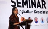 Menteri Keuangan Sri Mulyani foto memberikan keynote speech pada acara Seminar Perpajakan di Kantor Direktorat Jenderal Pajak, Jakarta, Rabu (11/7). Pada keynote speechnya Menkeu Sri Mulyani, menceritakan kondisi Direktorat Jenderal Pajak (DJP) 10 tahun lalu tersebut, dalam rangka memperingati Hari Pajak pada 14 Juli "Wujudkan Indonesia Pajak". (FOTO : Mahmud Muhyidin)