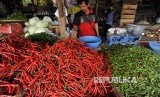 Pedagang menyortir cabai merah di Pasar Induk Rau, di Serang, Banten, Rabu (11/7). Sejak 1 Juli 2018 seiring naiknya harga BBM, harga sejumlah komoditas sayuran melonjak naik, seperti harga cabai keriting naik dari Rp35.000 menjadi Rp52.000, harga cabai rawit naik dari Rp25.000 menjadi Rp40.000 (FOTO : Asep Fathulrahman/Antara)
