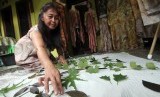 Perajin mengerjakan pembuatan batik cetak daun di galeri Fashion Ecoprint Jumiko, Cilebut, Kabupaten Bogor, Jawa Barat, Rabu (11/7). (FOTO : Antara/Yulius Satria Wijaya)