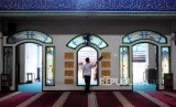 Petugas membersihkan Masjid An Namiroh yang berada di kawasan Asrama Haji Embakarsi Jakarta-Bekasi, Bekasi, Jawa Barat, Kamis (12/7). (FOTO : Republika/Putra M. Akbar)
