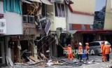 Petugas damkar melakukan evakuasi puing-puing bangunan Tempat Kejadian Perkara (TKP) ledakan gas di Ruko Perkantoran Grand Wijaya Center, Kebayoran Baru, Jakarta, Kamis (12/7). (FOTO : Republika/Mahmud Muhyidin)