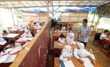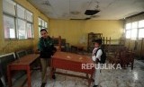 REPUBLIKA.CO.ID, BOGOR -- Suasana hari pertama sekolah di SDN Mutiara, Desa Cibeber II, Leuwiliang, Kabupaten Bogor, Jawa Barat, Senin (16/7, siswa terpaksa belajar di tenda karena gedung sekolah yang kondisinya sudah tidak layak.