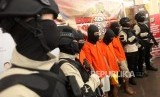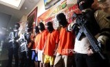 REPUBLIKA.CO.ID, JAKARTA -- Sejumlah tersangka diperlihatkan saat rilis pengungkapan kasus pelaku begal di Mapolres Jakarta Selatan, Jakarta, Selasa (17/7).