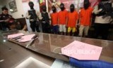Sejumlah tersangka diperlihatkan saat rilis pengungkapan kasus pelaku begal di Mapolres Jakarta Selatan, Jakarta, Selasa (17/7). (FOTO : Republika/Mahmud Muhyidin)
