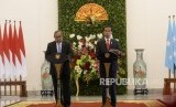 Kunjungan Kenegaraan Presiden Mikronesia. Presiden Joko Widodo (kanan) bersama Presiden Federasi Serikat Mikronesia H.E. Peter M. Christian melakukan konferensi pers bersama saat kunjungan kenegaraan di Istana Kepresidenan Bogor, Jawa Barat, Rabu (18/7). (FOTO : Republika/ Wihdan)