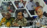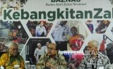 REPUBLIKA.CO.ID, JAKARTA -- Ketua Baznas Bambang Sudibyo bersama Sekretaris Jenderal The Jordan Hashemite Charity Organization for Relief & Development (JHCO) Ayman R Al-Mufleh dan Wakil Ketua Baznas Zainulbahar Noor memberikan paparan seusai melakukan pertemuan kerja sama di kantor Baznas, Jakarta, Rabu (18/7).
