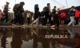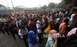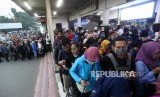 REPUBLIKA.CO.ID, BEKASI -- Antrean penumpang yang hendak membeli tiket KRL Commuter Line juga terjadi di Stasiun Bekasi, Bekasi, Jawa Barat, Senin (23/7).