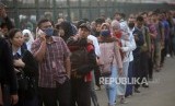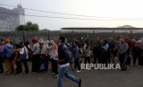 Antrean penumpang saat membeli tiket KRL Commuter Line di Stasiun Bekasi, Bekasi, Jawa Barat, Senin (23/7). (FOTO : Republika/Mahmud Muhyidin)