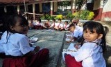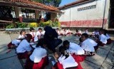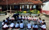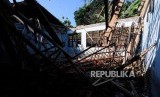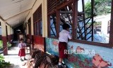 REPUBLIKA.CO.ID, BOGOR -- Sejumlah siswa melihat ruangan kelas yang ambruk di Sekolah Dasar Negeri (SDN) Kotabatu 08, Bogor, Jawa Barat, Senin (23/7).