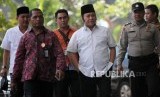 REPUBLIKA.CO.ID, JAKARTA -- Bupati Lampung Selatan Zainudin Hasan dikawal petugas untuk menjalani pemeriksaan saat tiba di gedung KPK, Jakarta, Jumat (27/7).